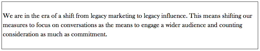 This means normalising legacies so that everyone can understand and take part. It means opening up the prospect of a legacy to a large audience that is not currently considering one. It means measuring consideration as much as commitment.