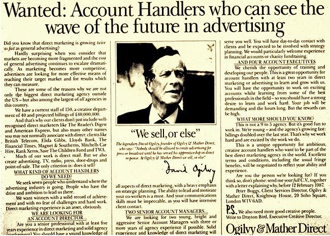 In extolling the benefits and learning potential of direct response Ogilvy can barely disguise his contempt for practitioners of general, unmeasured advertising, who he once described as, ‘airheads’ who prefer creating pretty pictures to generating results.