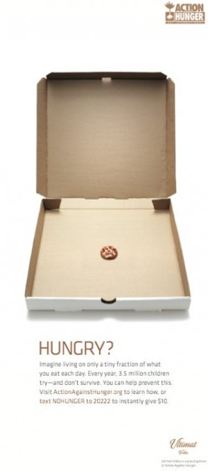 This campaign using print ads from from Action Against Hunger (AAH) is a great example of how to fail to motivate your audiences to take action that will benefit your cause.