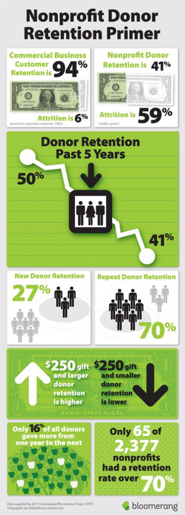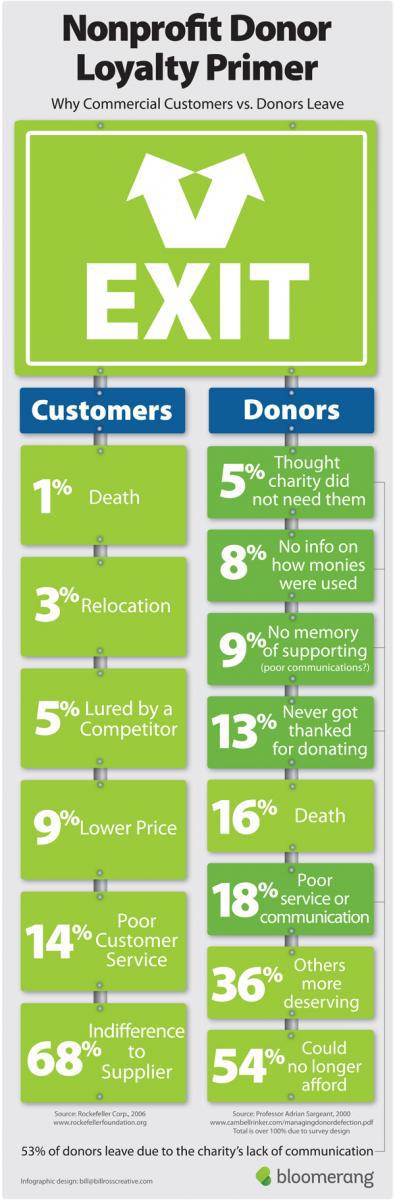 Notice the comparison of reasons in the nonprofit donor loyalty primer below. (Problems viewing this infographic? Go here.)