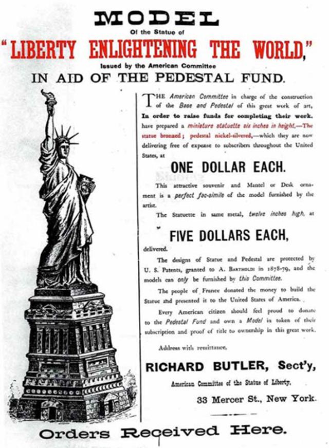 Joseph Pulitzer stepped in and, through his newspaper The New York World, ran a fundraising campaign targeted to working-class Americans and promised a reward.