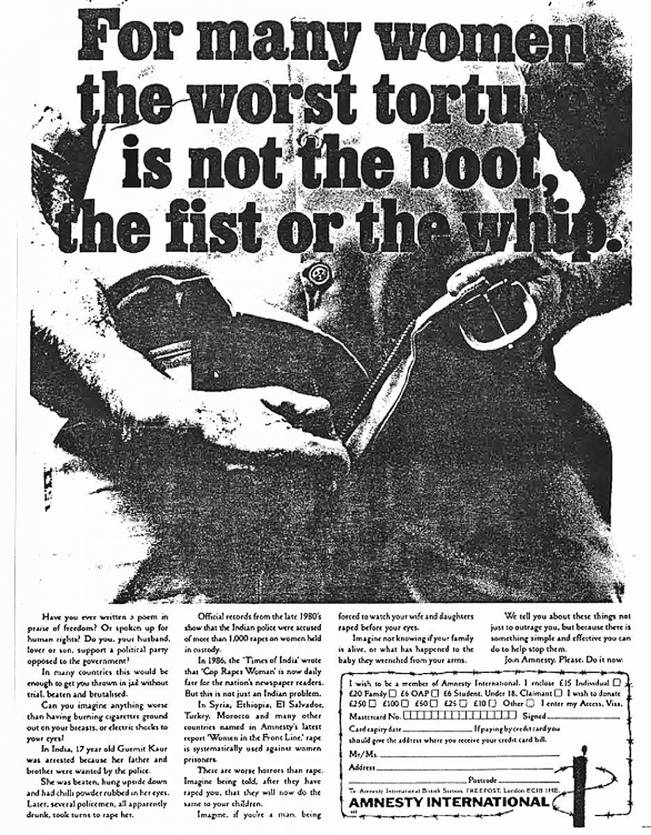 Newly added to SOFII’s archive of brilliant Amnesty ads from yesteryear is this shocking full page from the mid 1990s. Though distressing, it’s well worth reading and studying.