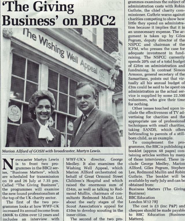 There is not enough space here to do more than sketch the merest outline of the strategy and all the many activities that delivered the staggering results achieved by the Wishing Well Appeal teams.