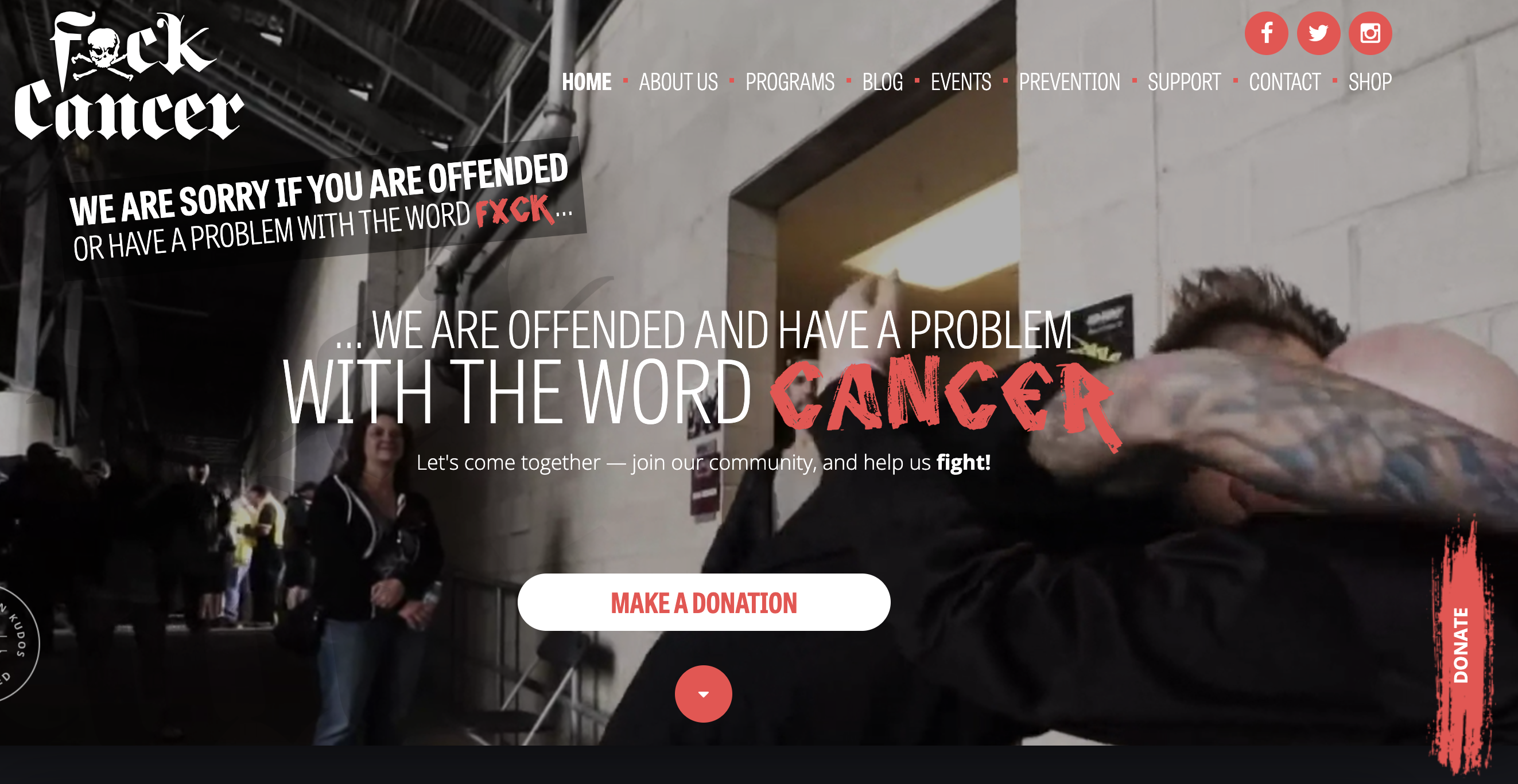 When I consider this organisation’s name from a marketing perspective, I think it could only work with cancer. I’m not sure ‘Fuck Diabetes’ or ‘Fuck Heart Disease’ would have the same impact as ‘Fuck Cancer.’