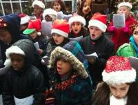 Every night a children’s choir sings carols to raise money for a whole sequence of good causes – it almost doesn’t matter which. These choirs are neither senior nor musically very adept; these are groups of primary school kids, wrapped up in their winter coats, brought in from their schools by their teachers to sing in public. Collectors, probably parents, walk around the crowd that inevitably gathers, with seriously jangling tins.