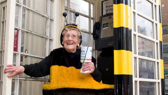 Jean has won a Pride of Britain award, provided countless press opportunities for Age UK and even had a phone box in Hull city centre painted black and yellow in her honour. She also briefly swapped her bee costume for a tracksuit to carry the Olympic Torch through Hull in 2012.