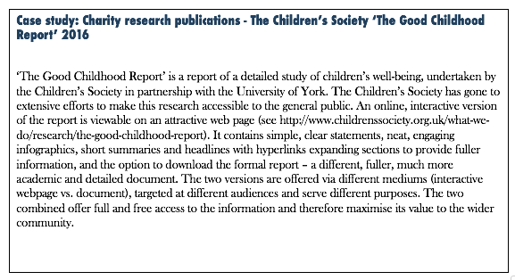 Take care not to automatically drift into a more complex and formal style when developing copy for what we might feel are more formal topics, such as information about use of personal data, or information about how to make a complaint and how it will be addressed. Likewise, even if the primary readership of a document is not supporters or the general public (as in the case of Trustee reports), if the document is made available to supporters, consider either providing an accessible summary version, or avoiding the conventional formal and complex style of these documents when writing the original, to ensure it is accessible to a wide audience.