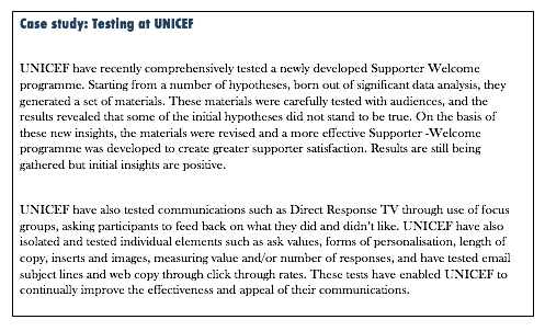 CDE project 1 section 9: test your communications to find out what works best for your charity and your supporters.