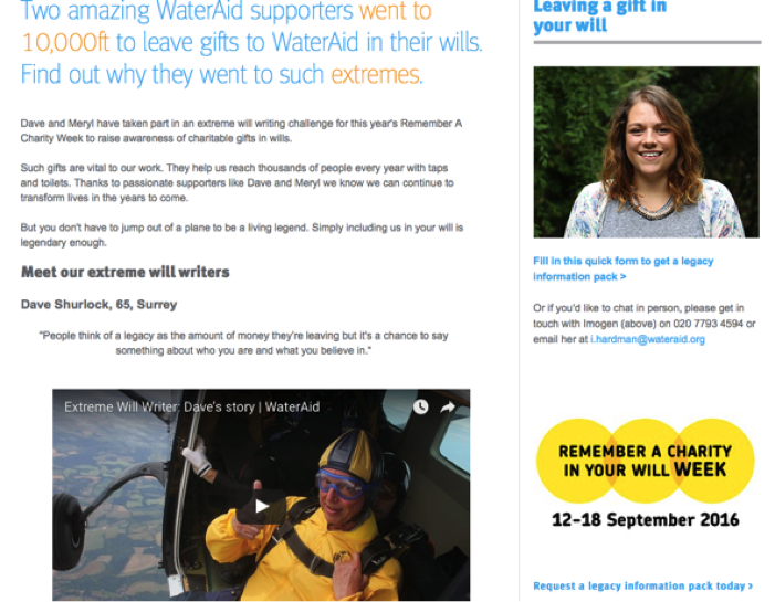 - Allow WaterAid to test legacy messages and deliver a donor friendly campaign
