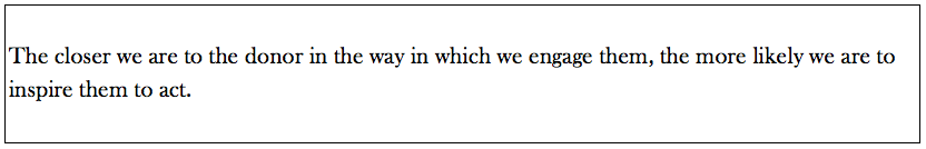 - Organisations that are keen to share a problem and engage people with a solution forget to frame this in terms of the needs of the donor