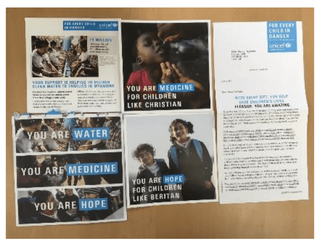 UNICEF use personalisation in their thank you letter to directly connect the donor and beneficiary.