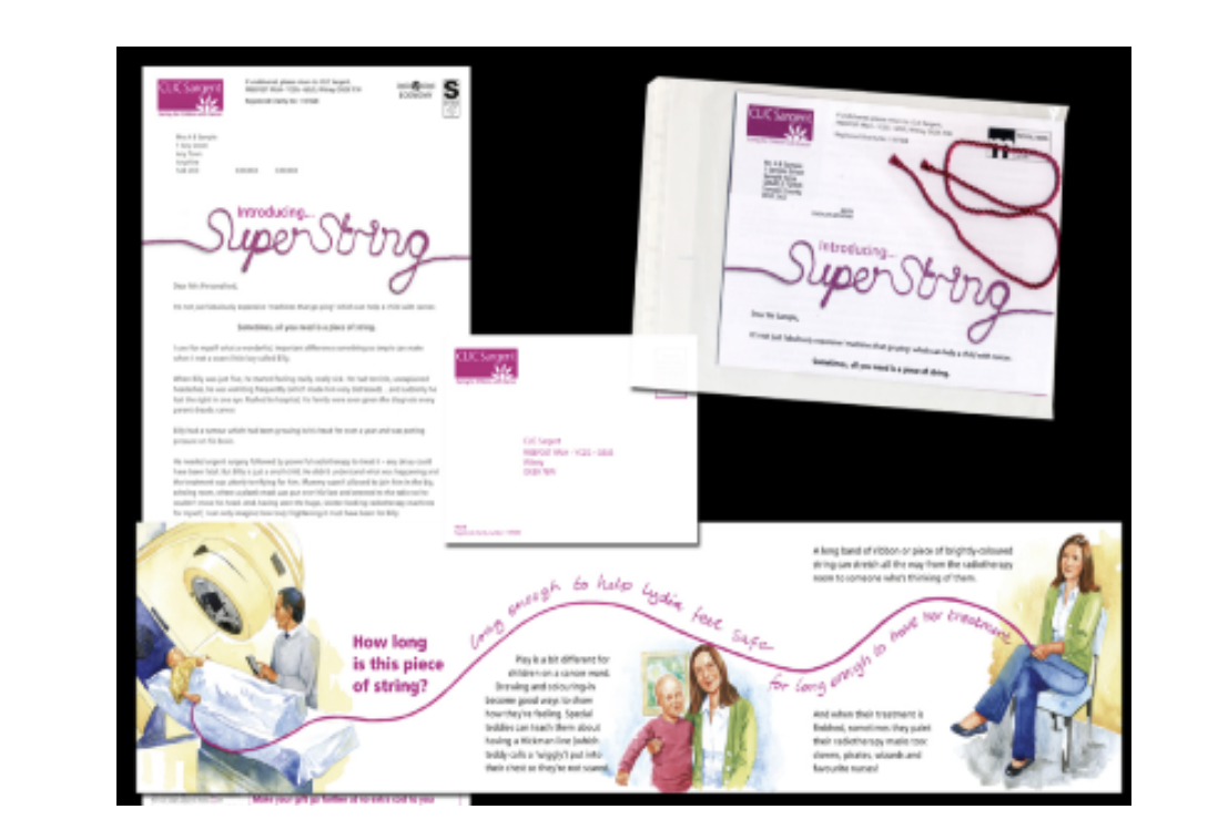 This CLIC Sargent pack was built on the insight unique to them – they use string to connect a child with their mother when they are undergoing treatments where they cannot be accompanied. The pack included a piece of string to bring this concept to life.