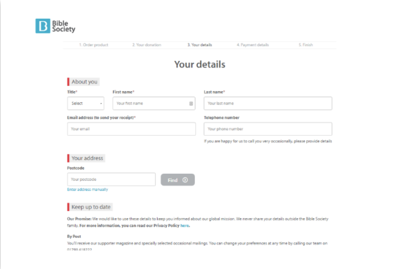 - People could order a free calendar, but the telephone number was optional, and the form asked people to give the number if they were happy to be called. (Multipage form Version B)
