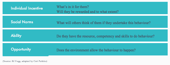 This project report is not the place to unpack the vast and fascinatingly nuanced discoveries of behavioural science in technical detail – books and papers by Daniel Kahnman, BJ Fogg and Richard Thaler should be your first port of call for the fully tested methodologies.