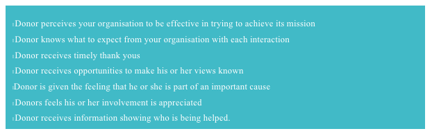 And if the donor concerns weren’t already ringing loud and clear, here are Roger Craver’s Seven drivers of donor satisfaction, detailed in his book Retention Fundraising, based on a study involving over 2,500 charities in the UK and US: