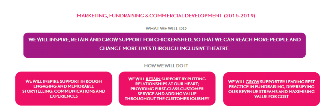 After we set our goal “to inspire, retain and grow support to reach more people and inspire more lives”, we reorganised our box office, marketing and fundraising teams to meet it.