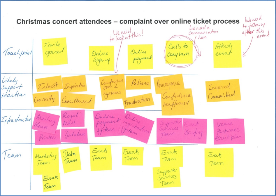 “From this exercise, we realised there is possible confusion when people sign up, that we need to build in a communication following a complaint and we need another touch point after someone attends an event.”