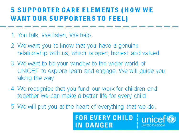 Case example: UNICEF – 3 pillars of supporter experience