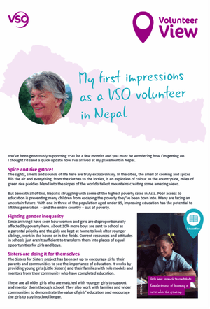 Just before the second gift is taken, donors receive another email or letter from their volunteer. Again, these are personalised and written just after the volunteer has arrived at their placement. They talk about their first impressions, what their new home is like, who their colleagues are and, sometimes, what strange food they have tried! Again, the donor is encouraged to link to or visit the volunteer’s most recent blog post for more content and photos. We make all the text as warm and personable as possible so the donor feels connected to their volunteer and engaged in their VSO life.
