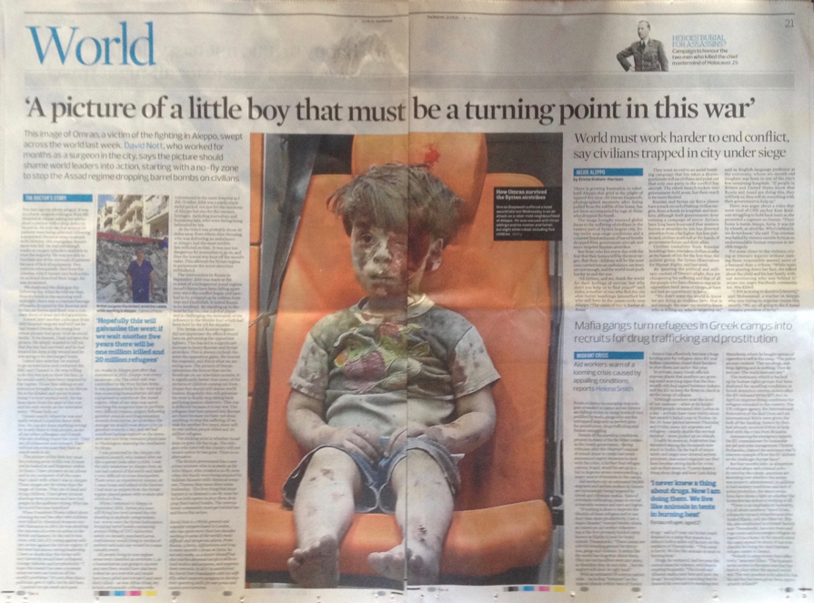 Emotions are undeniably super-powerful. The double page feature above from The Observer of August 2016 shows the power attributed even by seasoned journalists to a single emotive image. The headline describes it as ‘A picture of a little boy that must be the turning point in this war.’
