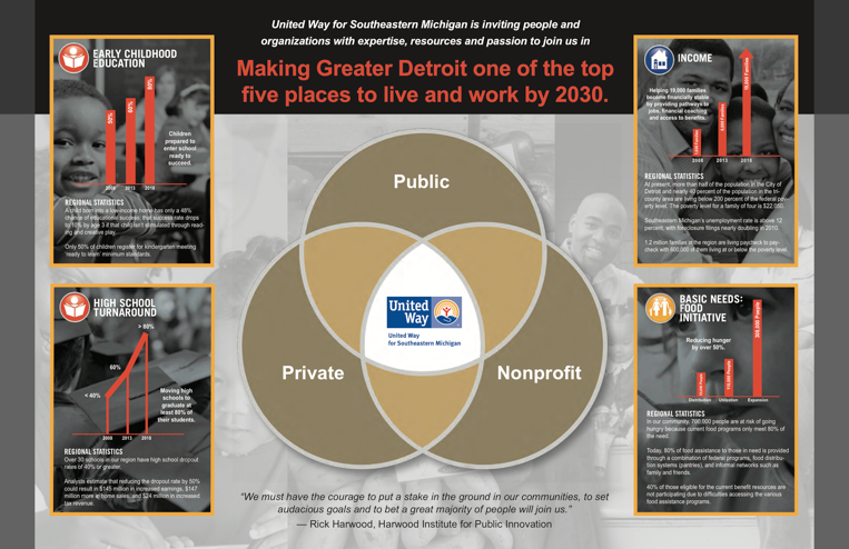 Meet one courageous leader and board at the United Way for Southeastern Michigan (UWSEM). Then President and CEO Michael Brennan and the UWSEM board of directors declared a Jim Collins-worthy (Good to Great) Big Hairy Audacious Goal (BHAG): make Greater Detroit a top five city to work and live by 2030.