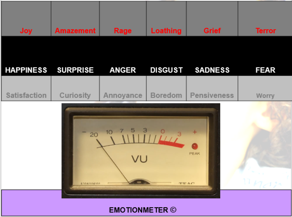 The six key emotions as identified by Hill and Ekman can be imagined as a spectrum: they can be high intensity or low intensity. For example, we can feel pain - high intensity - or just be sad - low intensity, or we may feel annoyed (low intensity) or be angry (high Intensity). This is very clear in the Atlas of Emotion developed by Ekman mentioned earlier. The studies of Ekman and Hill proves that six core emotions, and only these six, are those that really matter in activating people and igniting behaviour such as the action of donating. In the Emotionmeter I summarized the emotion spectrum using Dan Hill’s classification so that six key emotions are aligned along the spectrum of intensity, low or high.