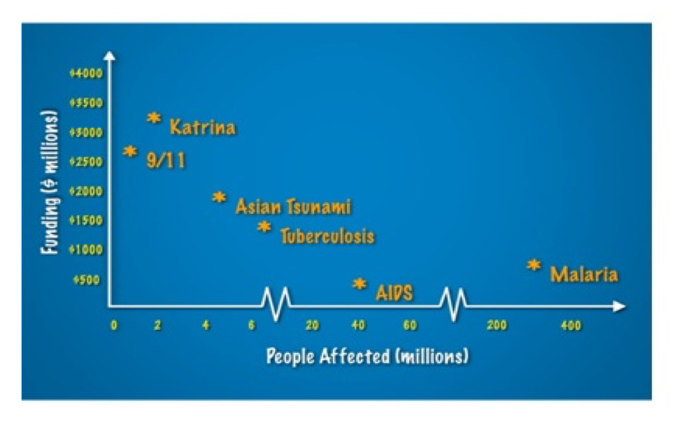 People gave more to 9/11 or Hurricane Katrina, which affected a relatively small number of people compared to malaria and HIV/AIDS.