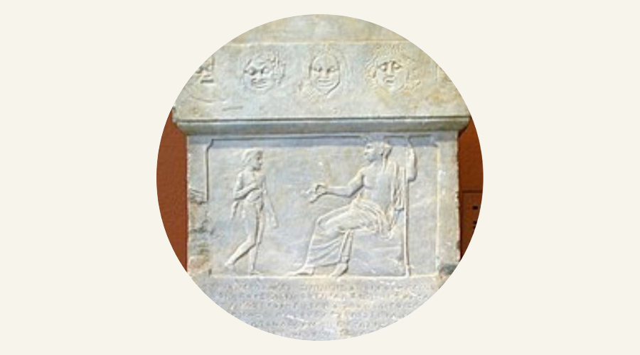 What you see above dates back to 313 BC. It’s public donor recognition for people in Athens, Greece who kindly paid for the costumes and chorus rehearsals in Athenian drama festivals. Donating to this was an expensive but well-respected way for Athenians to use their wealth for the public good.