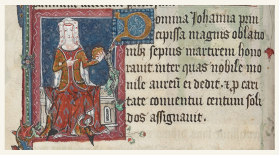 It’s because they are all recorded in the benefactor’s book at St Albans Abbey. The book was started in 1380 and everyone who gave a gift was recorded in it – whether that was a little gift (Nigel’s four shillings), a big gift (Joan’s land), or a gift in kind (Robert’s wine).