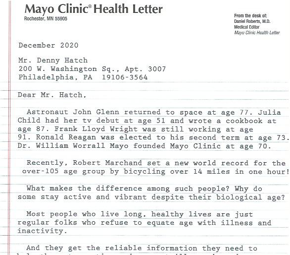 During the fifth week of 2021, the humongous Mayo Clinic envelope landed – folded in half – in the teeny mailbox of my high-rise apartment building mail room.