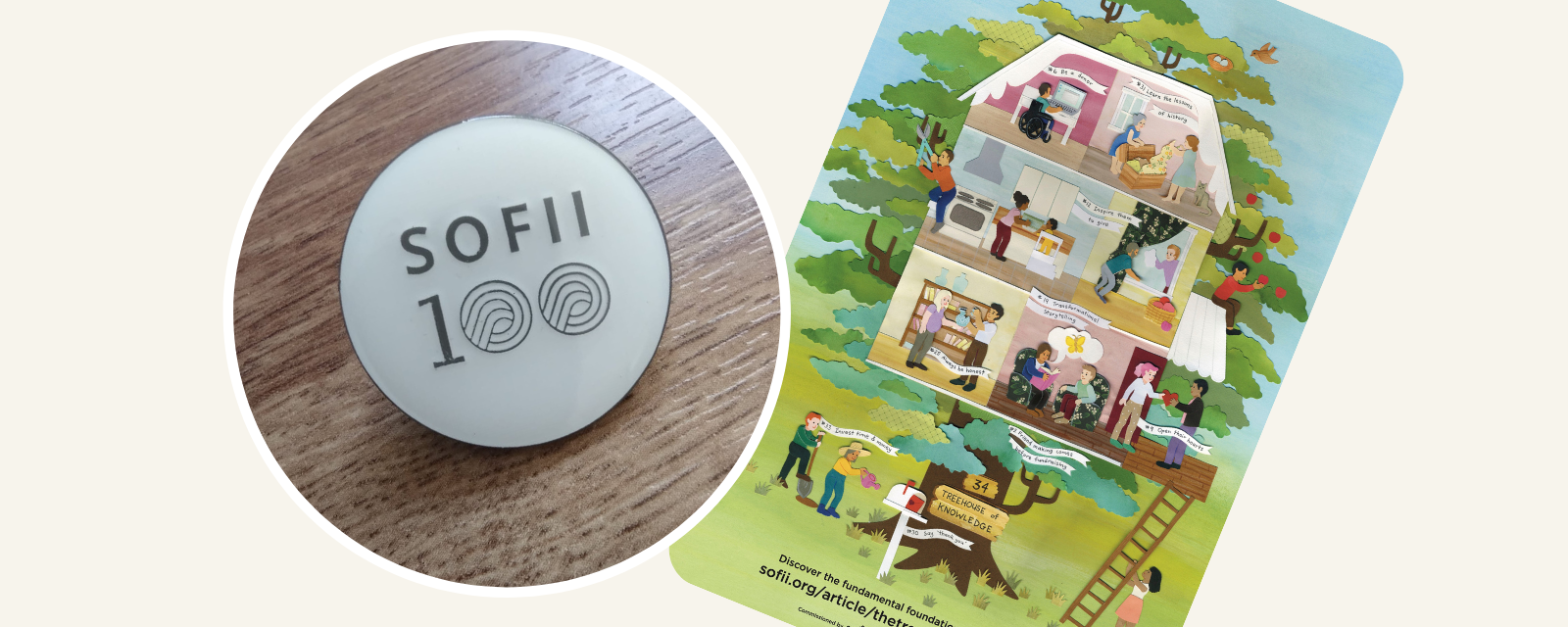 Spoiler alert: you will definitely get one of our cool SOFII One Hundred pin badges and a beautiful print of the Treehouse of Knowledge/34 Foundations of Fundraising. We’ve given you a sneak peek of those below!