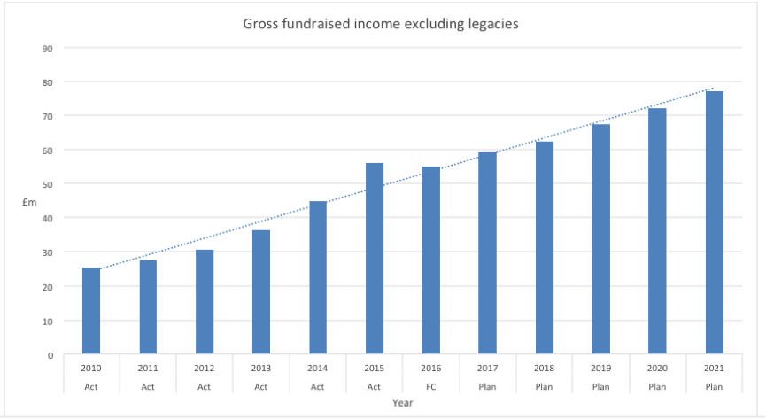‘Like many charities we used to have a stop/start approach to investment. You know, can we afford it? We insisted that we forget that fundraising budgets were in competition with other budgets. We had to grow our income in an extraordinary way. To do that, we couldn’t be hamstrung by lack of investment.