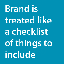 The problem is not brand per se, it’s the way organisations work with and think about it that ends up taking the intimacy and nuance out of communications. When brand is treated as a checklist of things to include, or not, rather than guidelines to inform – and when people are negative towards brand because it feels like it’s being applied in that way – the danger is that it stops some good things happening to begin with, or that they are edited out later and replaced by the same old form of words or organisation speak. Your communications become rather bland and samey and it affects results.