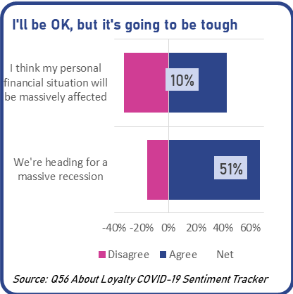 A net 51 per cent people believe that we’re heading for a massive recession. But only a net ten per cent think that they themselves will be massively affected.