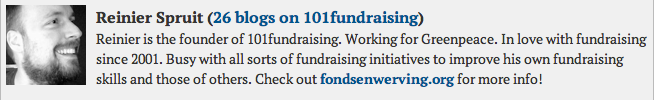 So, looking back over those ten years, what did I learn? I’ve listed the most important strategic ingredients for a successful fundraising programme. Ten years of fundraising experience summarised in one blog post. You only need 3:49 minutes of reading to catch up with ten years. Now that seems like the bargain of the decade! (A big thank you to all my fundraising colleagues from Médecins du Monde, Médecins Sans Frontières and Greenpeace who made me the fundraiser I currently am. And a special thanks to Roger Craver and John van der Vlies for the teachings in the early days!)