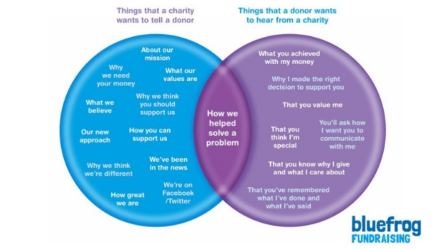 The egg campaign fits into the sweet spot in the centre of this Venn diagram, created by Mark Phillips and his team at Bluefrog Fundraising, that shows what and why donors want to support. The eggs solve a problem together.