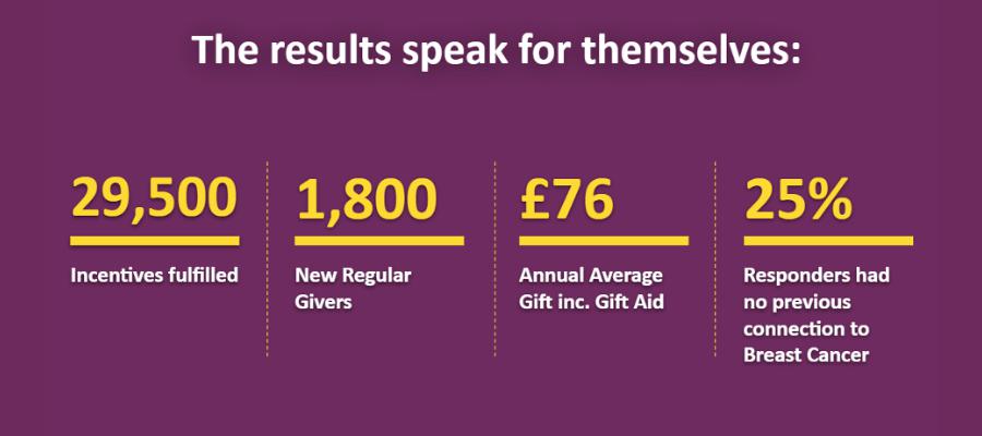 But one of the most amazing things about this campaign was that 25 per cent of those who responded, had no previous connection to breast cancer. This is incredible. It’s a complete contrast to the usual donor base of medical charities – where people tend to have a connection through family, friends or themselves. With this campaign, Breakthrough Breast Cancer tapped into a completely new audience.