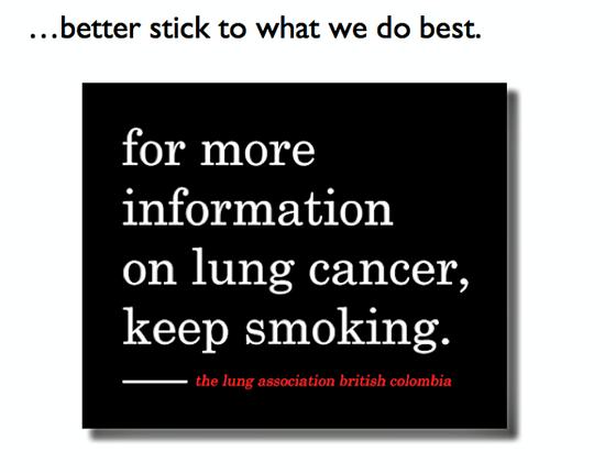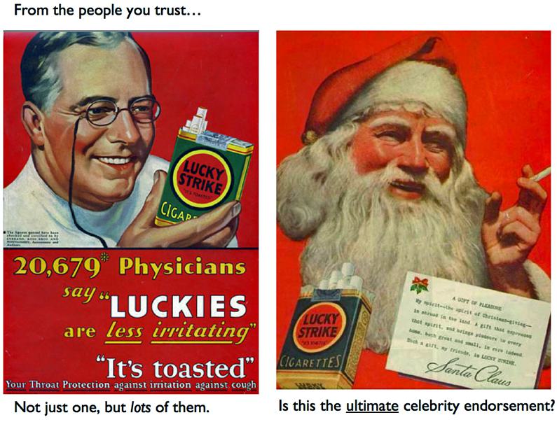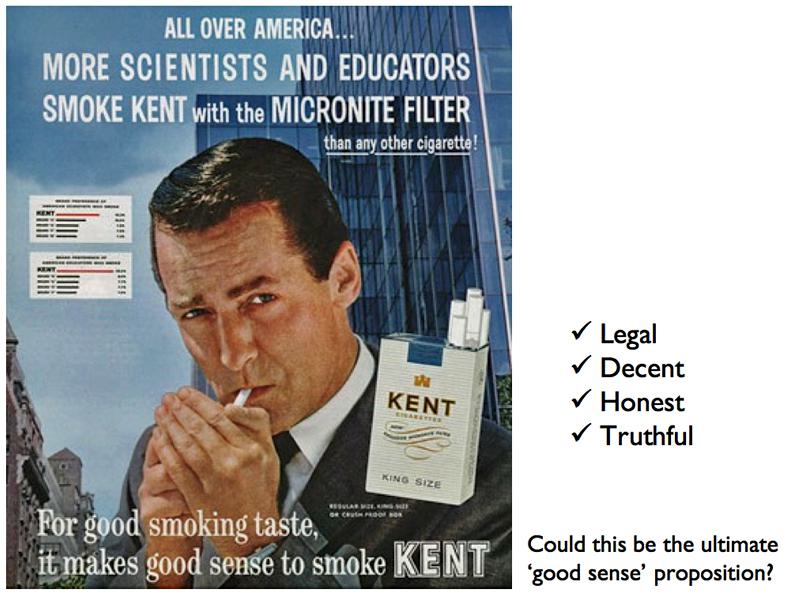 Not so long ago cigarettes were advertised by professional communicators not unlike us, with similar enthusiasms and passion for their product.