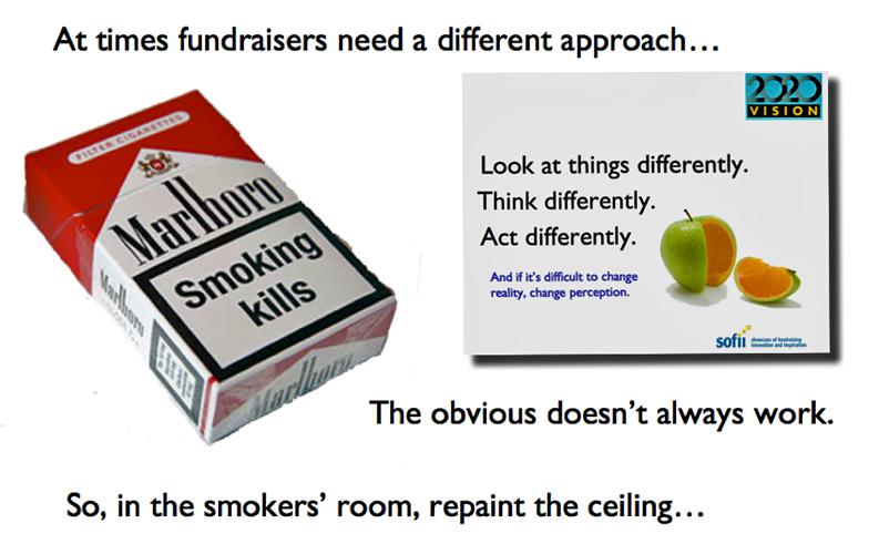 - Fundraisers can learn from how others do things – even from the selling of cigarettes.