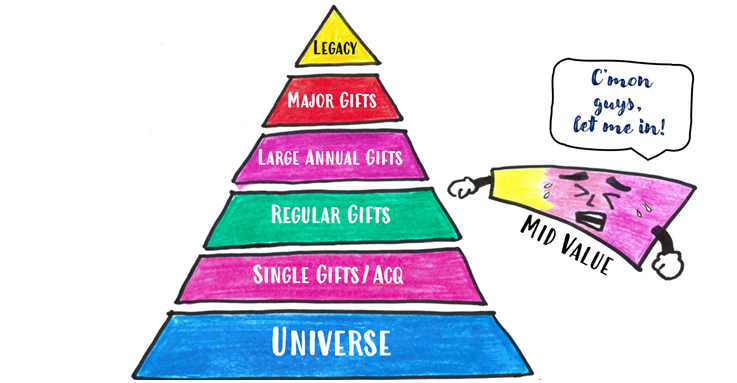 Just like the cliché of the middle child, these donors are somewhat forgotten, ignored, or swept up in the other segments. In fact, they aren’t even on the traditional donor pyramid: