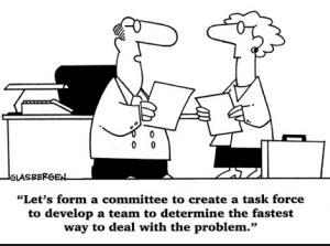 So a committee discusses an issue. Then refers it to the executive committee. Then the executive committee takes it to the board. This would be great if the issue deserved lots of discussion. And sometimes, issues do, indeed.