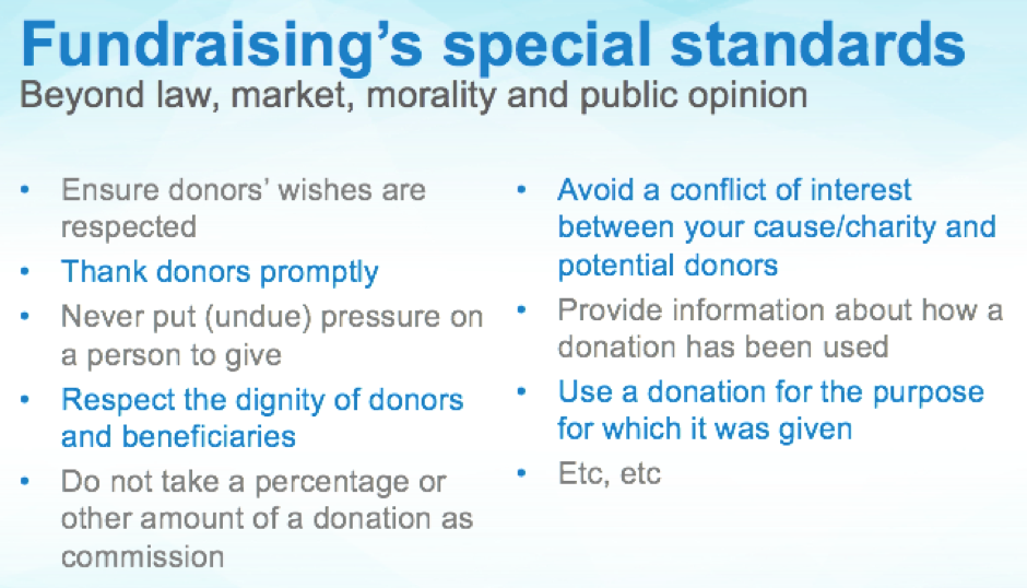 Here are some of the special standards Ian believes fundraisers could set as requirements for the profession: