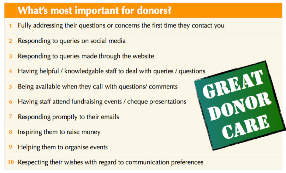 - ‘Learn the rules like a pro so you can break them like an artist’. The question of whether fundraising is a profession came up later in the conference but that line by Damian struck me as best summing up where fundraising is. Damian expressed his support for GDPR, citing an example of an organisation that asked him which American state he lived in, despite clearly contacting him in Ireland (Damian put California, home of Anchor Beer). By knowing what donors want and making sure that’s what you work from you can then move towards more flexible, even iconoclastic (back to Fritz Maytag III) approaches but only if you have the basics down pat (things like thanking, respecting wishes, etc). And what do donors want? Ask Direct surveyed nearly five thousand Irish donors and the below table would probably apply everywhere. I must say, it was part of a spirited defence of much-maligned GDPR.