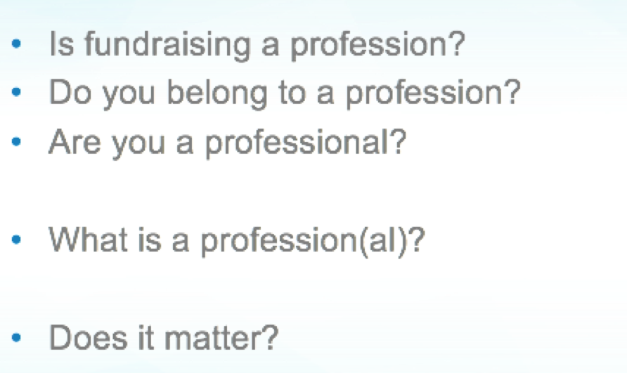 But here are two definitions Ian raised of what a profession is, and he explored whether or not modern fundraising meets them: