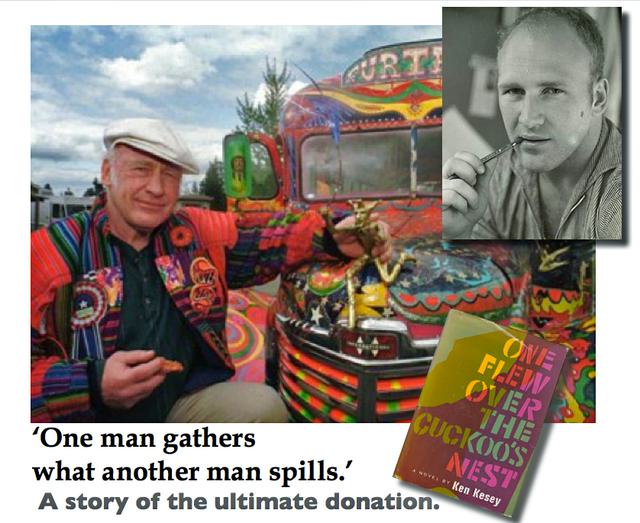 This is the story of Ken’s son, Jed, fatally injured in a road accident. It is an edited extract from a letter Ken Kesey wrote to his friends and family, to tell them what had happened. He called it 'One man gathers what another man spills’. The letter was to raise money for a permanent memorial to Jed to be built on the hillside in Oregon, USA where the accident happened.