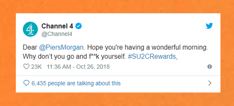 And let’s not forget that on a base level, Channel 4 calling Piers Morgan a ‘massive bellend’ is worth £50 of anyone’s money any day of the week. The campaign deserves a ‘doff of the cap’ for that alone.
