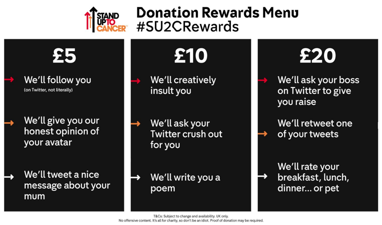 From IWITOT 2019: Stand Up 2 Cancer 2018’s hilarious donation rewards menu