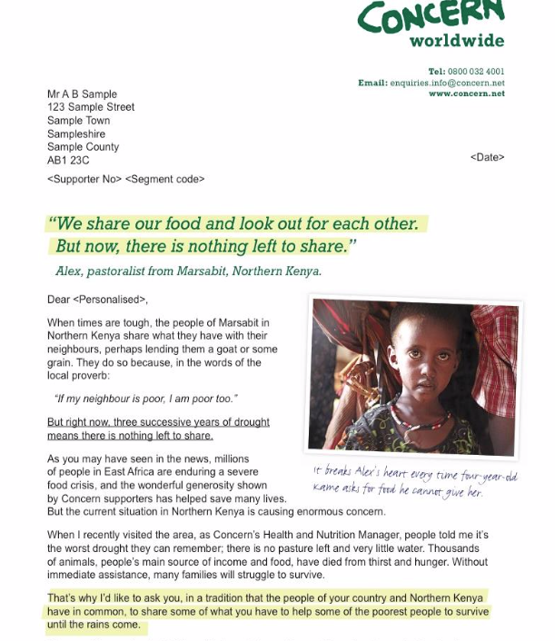 What’s more, if people respond to commercial ads they get something back: a product. We aren’t giving people the opportunity to drive their dream car, make huge savings on their utility bills or get 0% interest on their credit cards. We’re doing something much harder: persuading people to give money to help others, with only the good feeling it gives them in return.