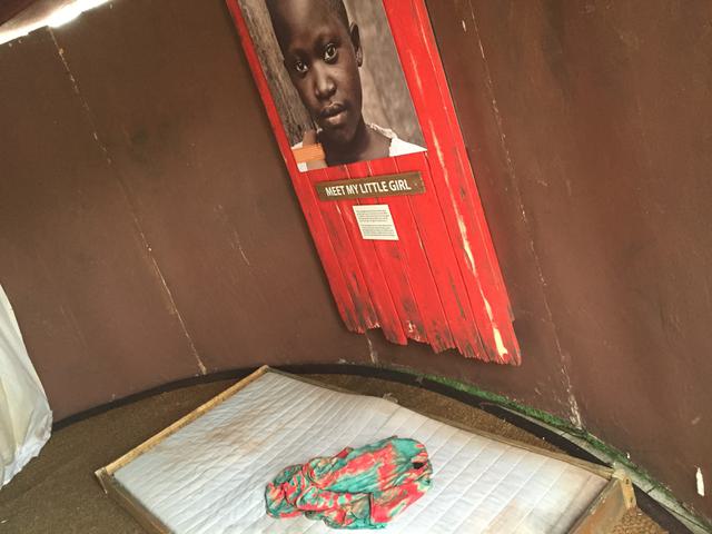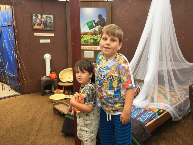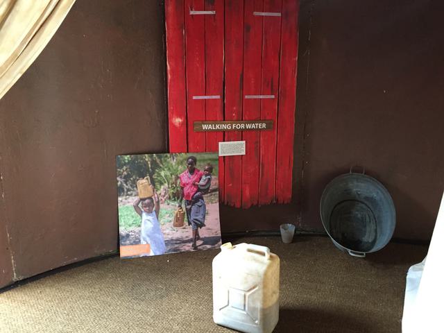 Next to the ‘bedroom area’ there was another display about the family's struggle to get water. Andre asked my boys, ‘How far do you think Miatta’s children, about the same age as you, have to walk before getting some water?’