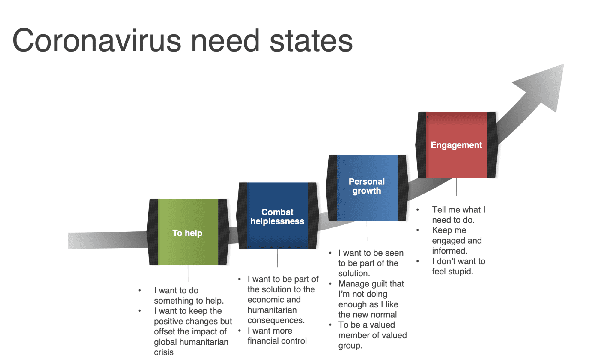 We have also found that donors are exhibiting a revised set of need states that need to be answered in your communication programme: